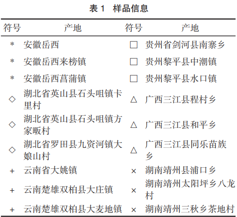 藥材樣品采集于安徽、云南、貴州、廣西、湖北、湖南等6個(gè)省(區(qū))18個(gè)產(chǎn)地。